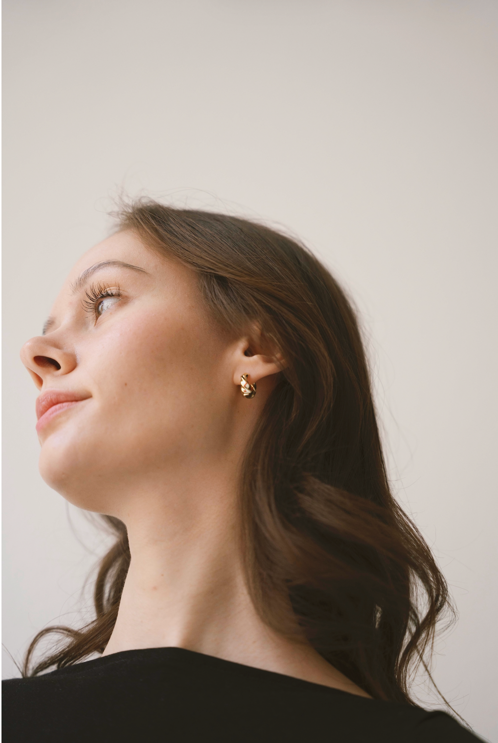 Bold looking croissant shaped twisted hoops that immediately add some glam factor to any outfit. You can’t go wrong with this classic and chic design.