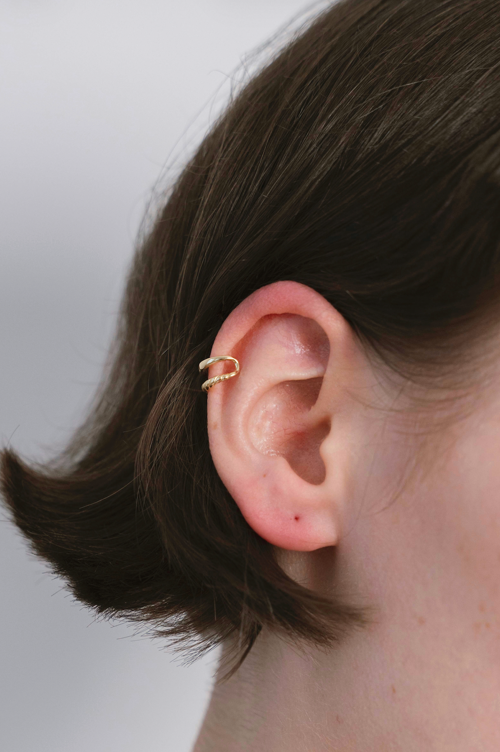The Flattering ear cuff is the perfect two-row ear cuff with a space in between that gives an illusion of it being two separate ear cuffs when worn. One row displays a smooth polished surface and the other comes in a twisted design.