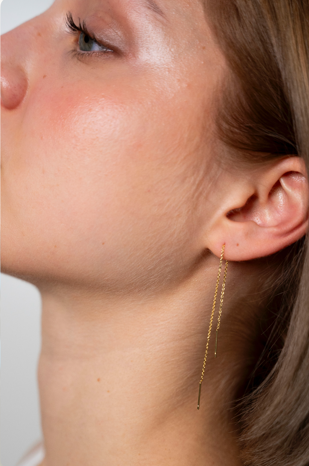 Our Delicate pull-through threader earrings are understated yet elegant consisting of a dainty chain with two fine needle ends.
