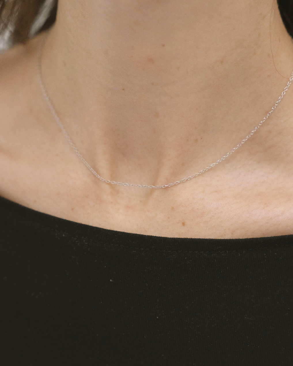 925 sterling silver white gold plated dainty naked chain necklace. Can be worn solo for a simple look or also works perfectly as a subtle layering necklace.