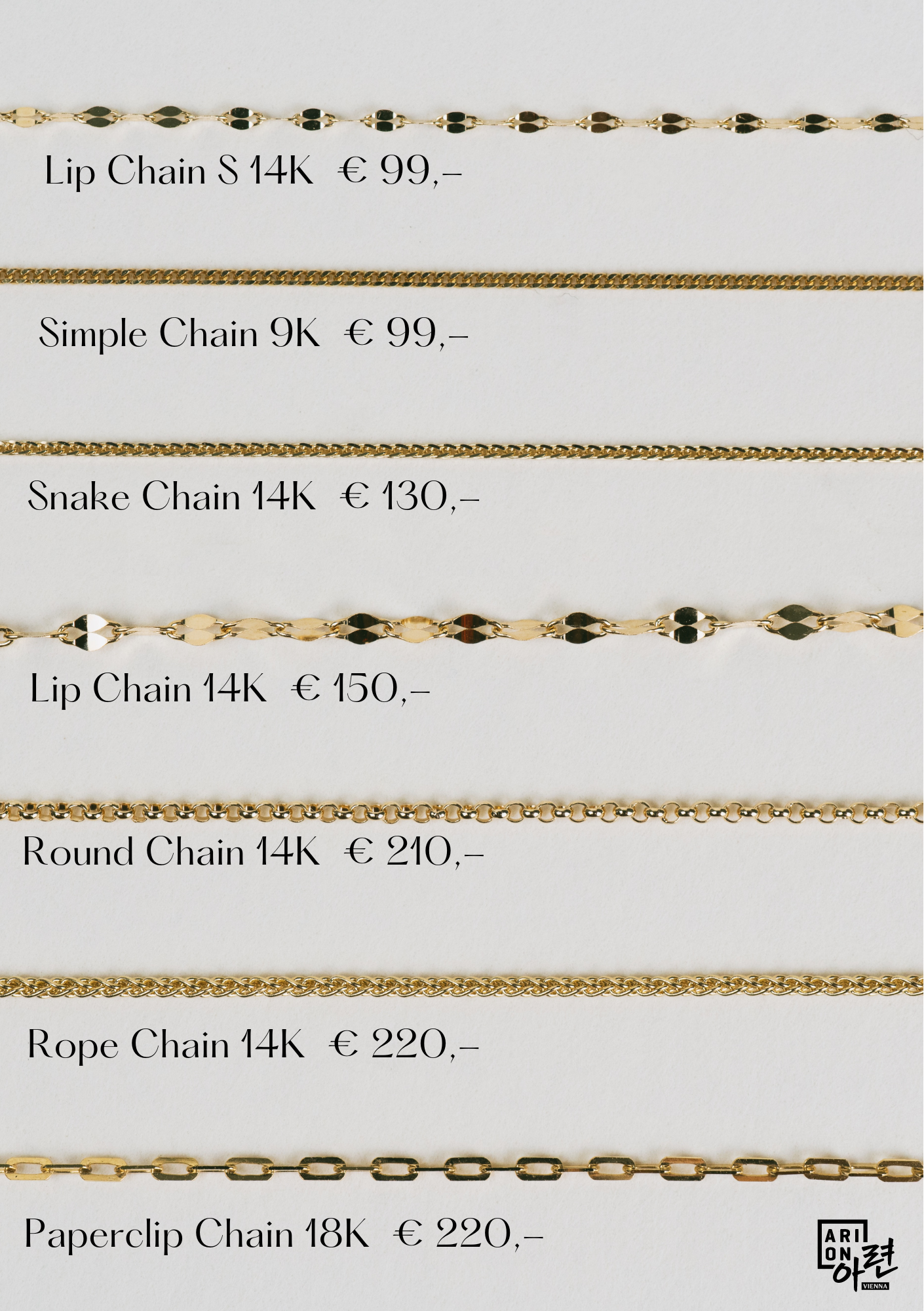 For gold bracelets we offer 14K and 18K solid gold chains.