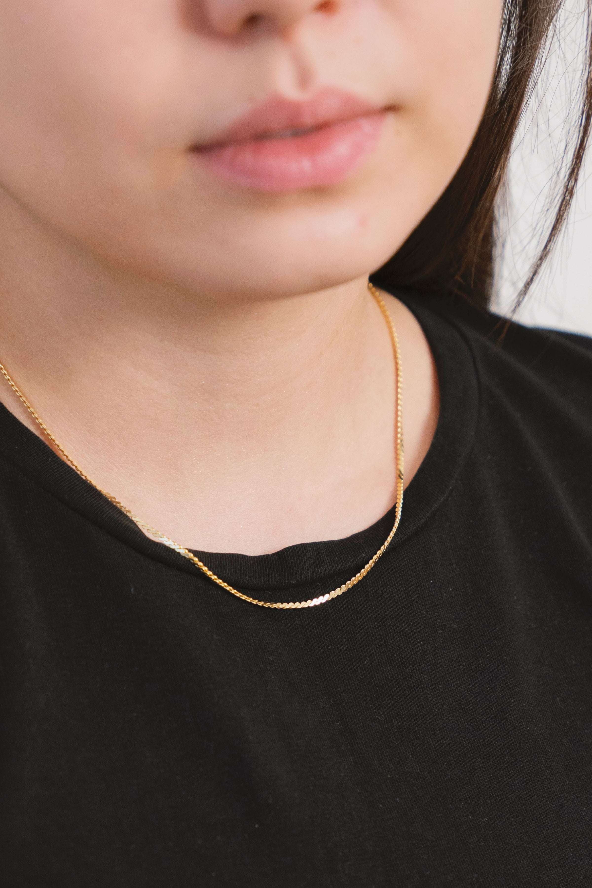 Experience timeless elegance with our Nameless Necklace, a stunning adornment that speaks volumes without saying a word. Crafted with precision and passion, this chain necklace features flat S-shaped links that intertwine gracefully, creating a mesmerizing pattern that catches the eye.
