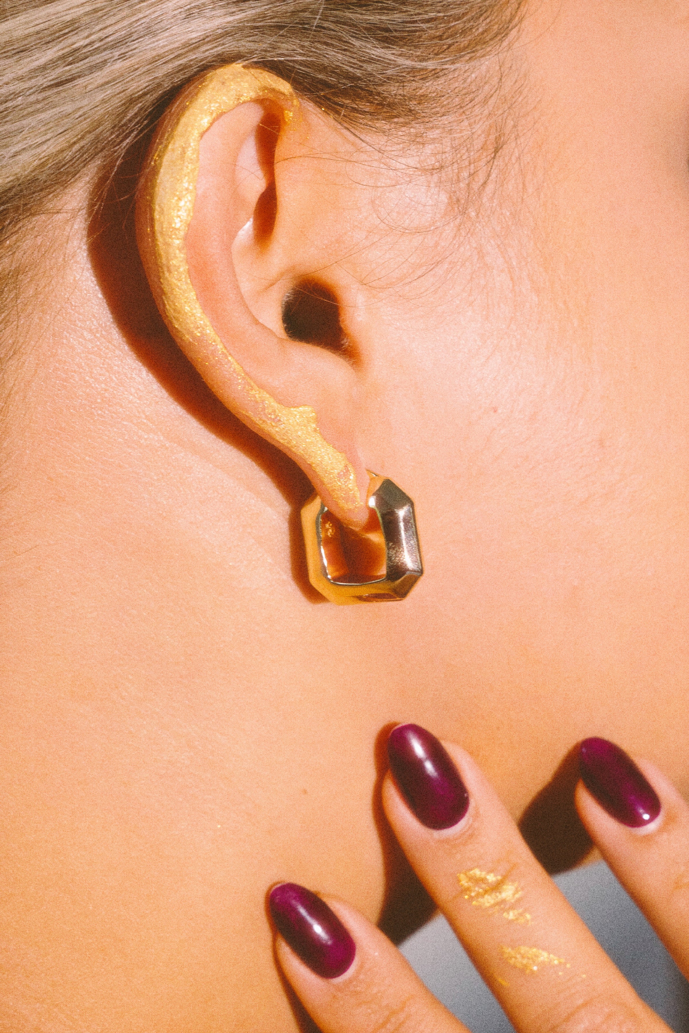 Crafted in brass with luxurious 14K gold vermeil, TESSARA Hoops are a celebration of geometry, form, and confident design — a timeless piece with edge.